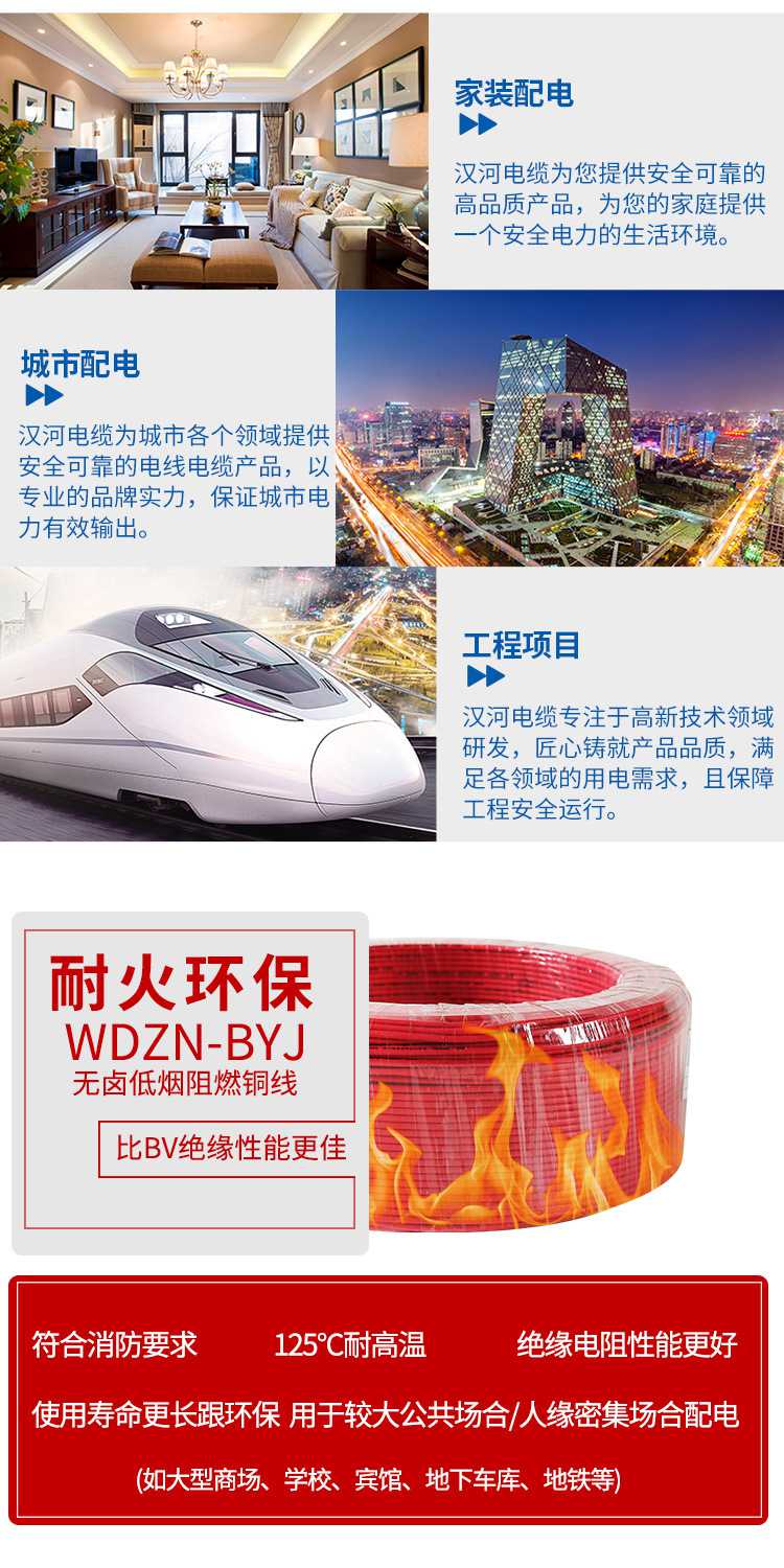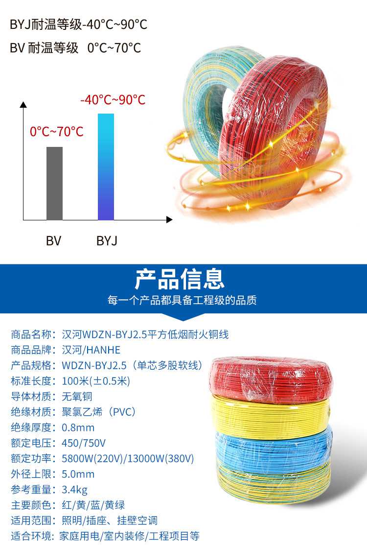 WDZN-BYJ2.5平方輻照無鹵低煙A級耐火家裝電線插座線